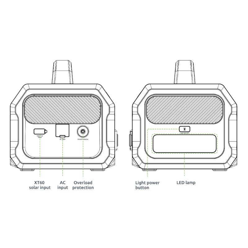 - Multiple input charging options – draw power from your car, solar panel, or from wall sockets
