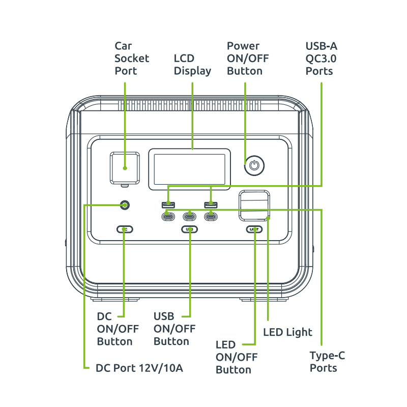 - 1x Type-C 100W PD Port (5V/9V/12V/15V-3A, 20V/5A)