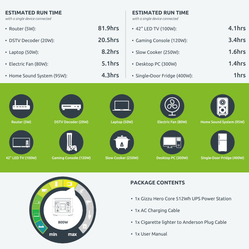 GIZZU HERO CORE 512WH/800W UPS FAST CHARGE LITHIUM PORTABLE POWER STATION (2 Years Warranty) - TV, Playstation, Lights, Laptop & Small Fridge