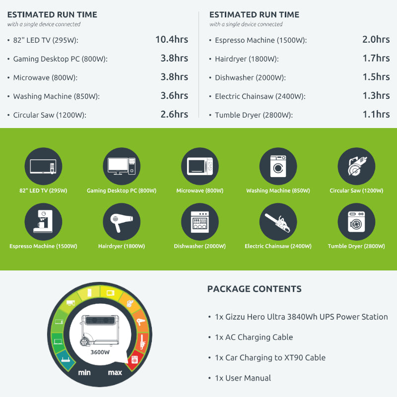 - Gizzu Hero Ultra 3840Wh UPS Power Station x1